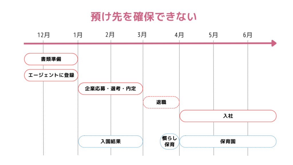保育園の合否は2月頃に確定することが多く、合否を待ってからの転職活動では、動き出しが遅くなるかもしれません。