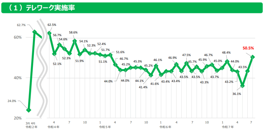 引用:テレワーク実施率調査結果(令和7年7月)|東京都
